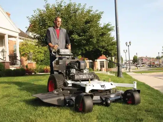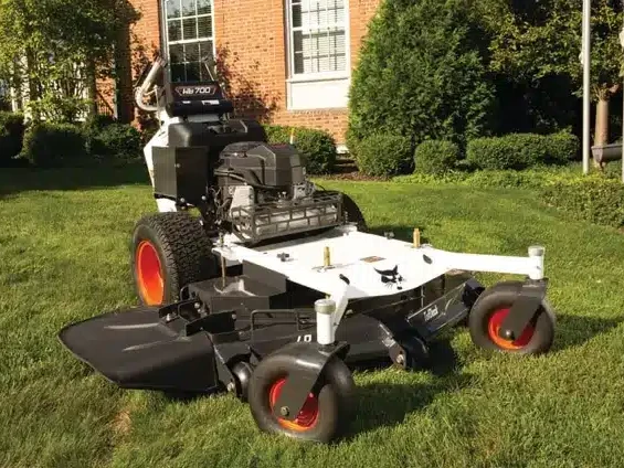 Walk-behind mower equipped with a 48″ side discharge deck.