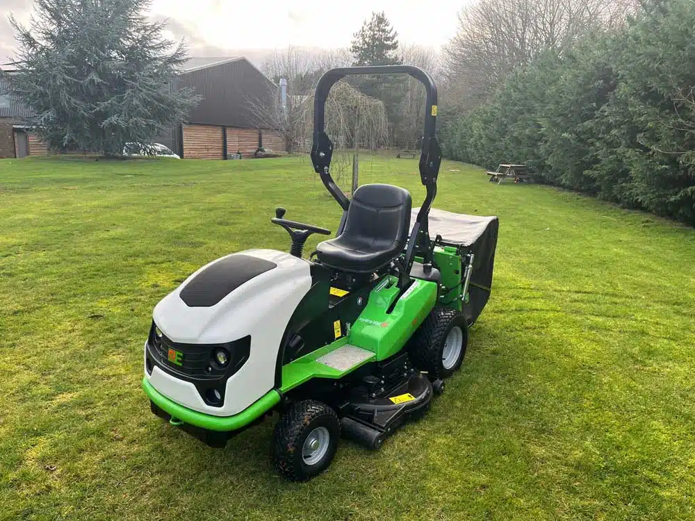 The world’s first 100% electric professional ride-on-mower with grass collection : – Drive and blade transmission 100% electric – Performance equivalent to the petrol version.